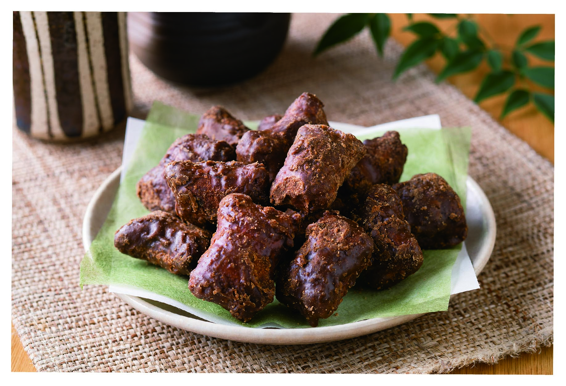 沖縄県産黒糖にむぎとろ自慢のとろろ入り。とろっとふんわりしたかりんとうです。
