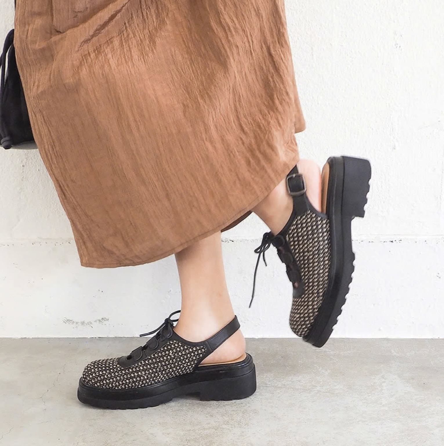 サンダルと靴のいいとこ取りをした涼やかなギリーバックスリング。
